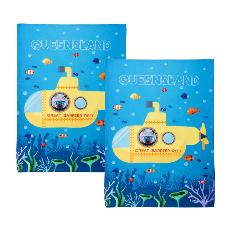IDC Homewares Set of 2 Christopher Vine Design Tea Towels Great Barrier Reef