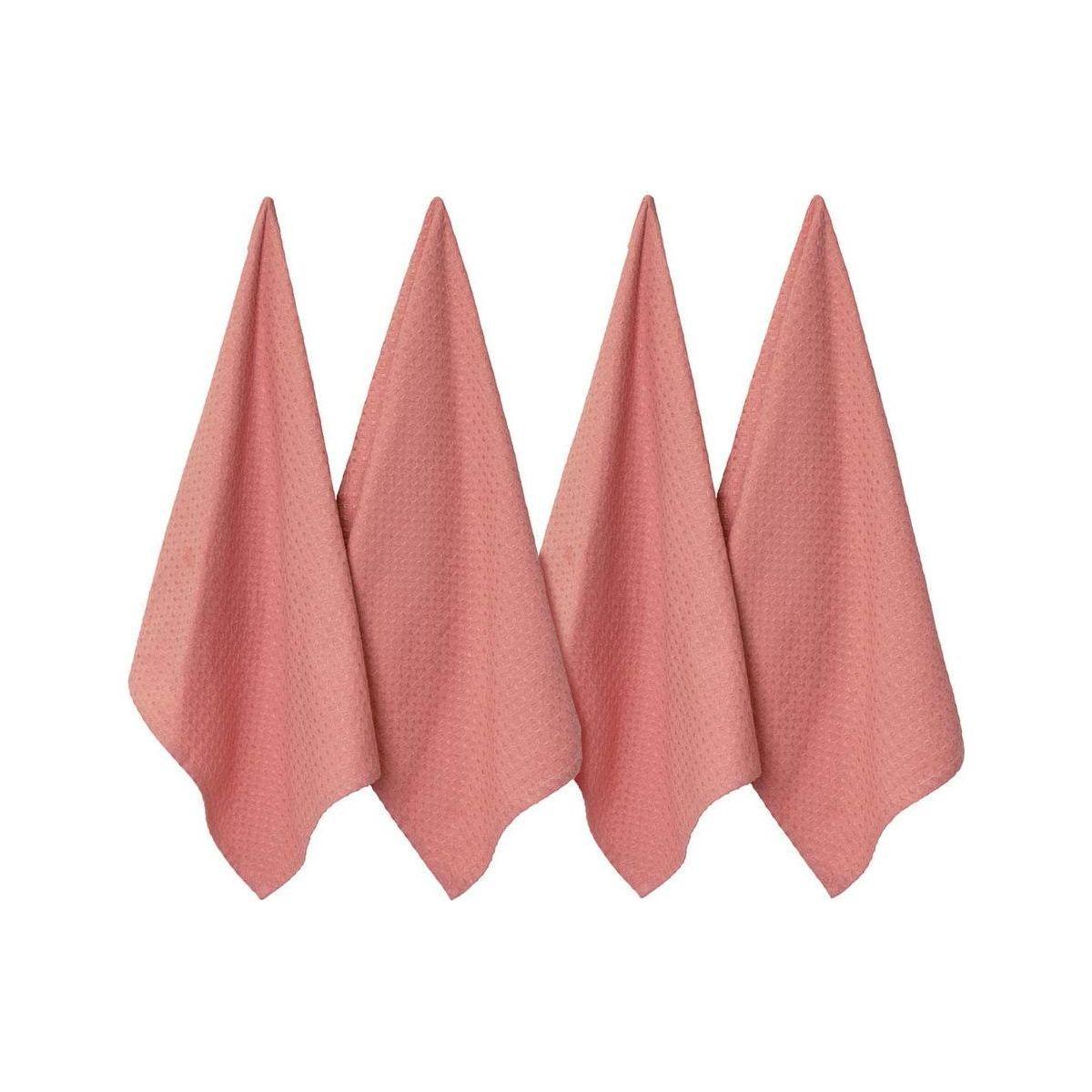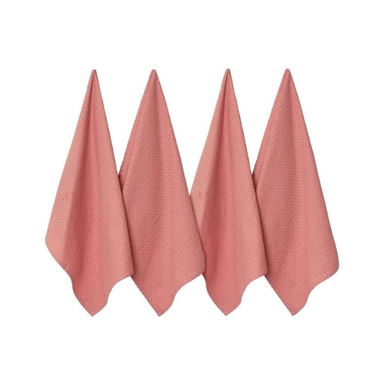 J Elliot Home Waffle Set of 4 Cotton Tea Towels 50 x 70 cm Clay Pink