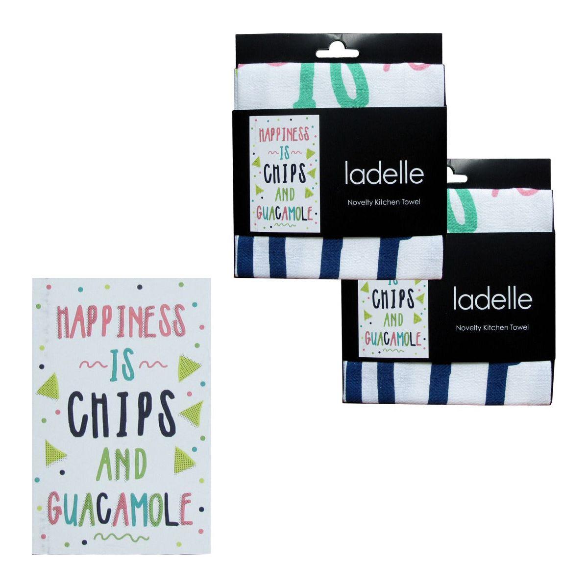Ladelle Set of 2 Cotton Tea Towels Happiness is Chips and Guacamole
