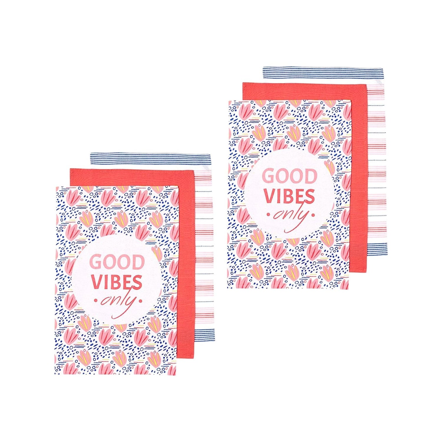 Ladelle Set of 6 Arise Good Vibes Tea Towels Pink