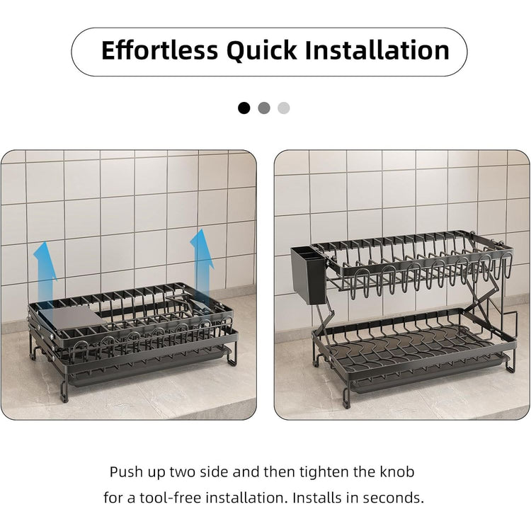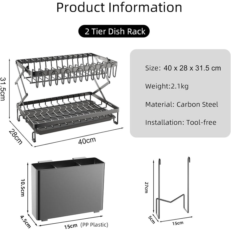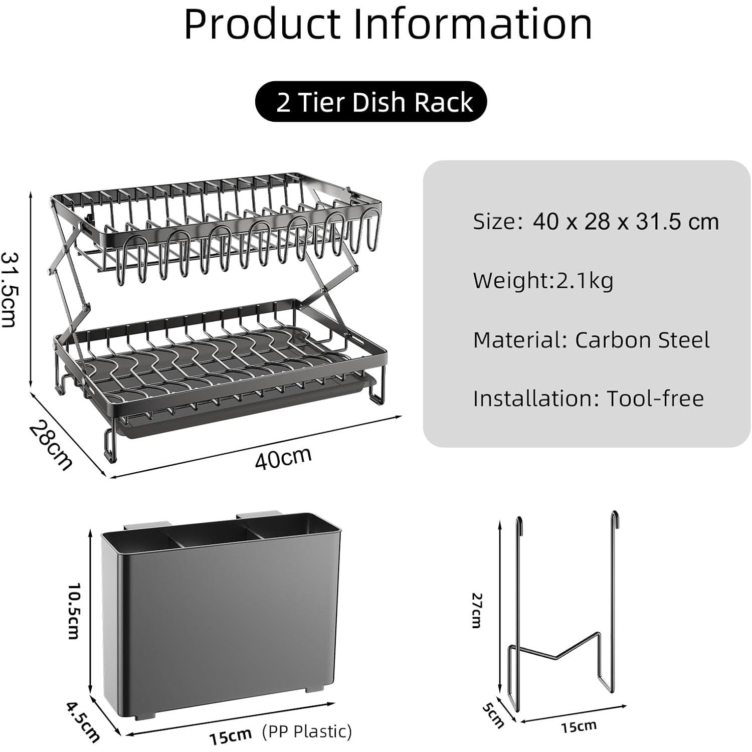 - RUSTPROOF & STURDY BUILD: Constructed from premium carbon steel with a sleek black coating, this dish drying rack resists rust, supports heavy loads, and stays wobble-free thanks to its reinforced triangular frame.