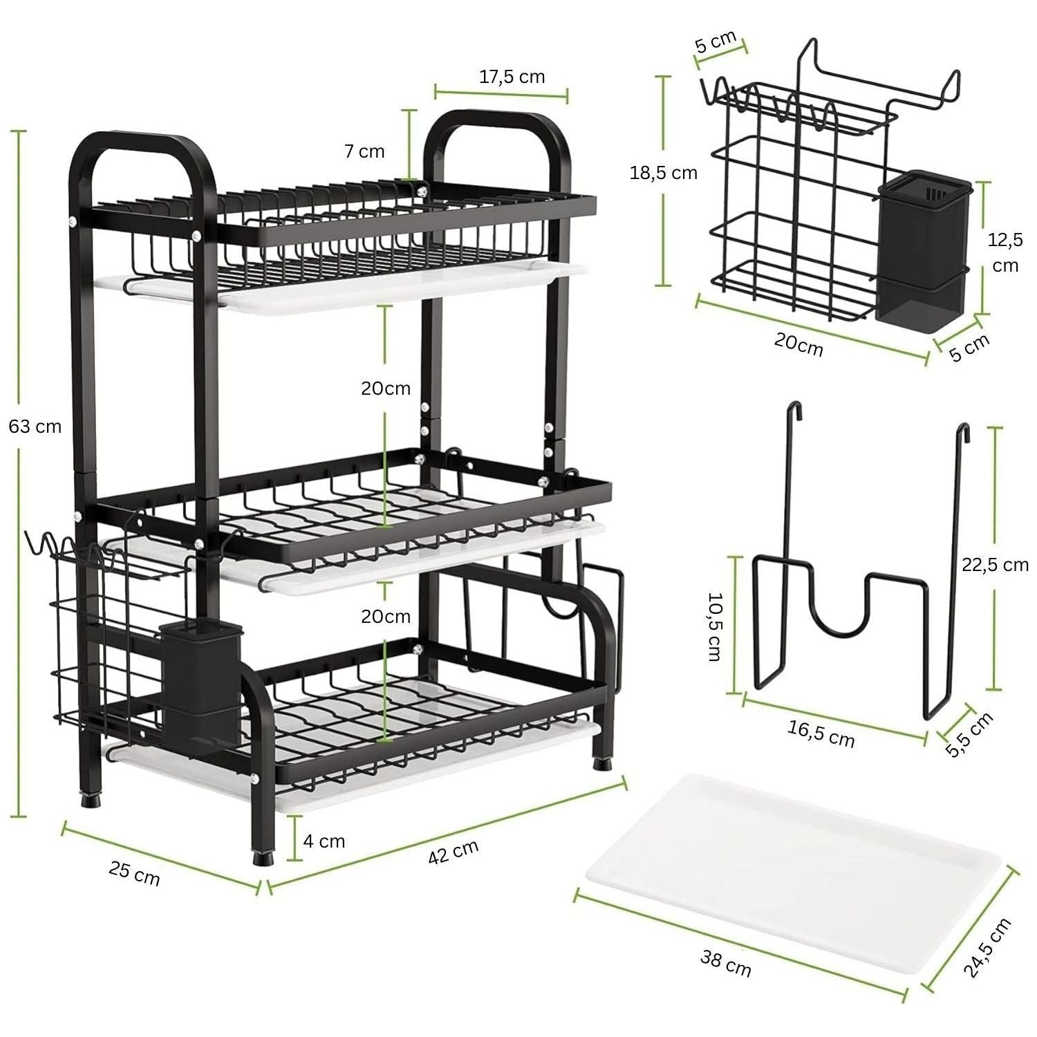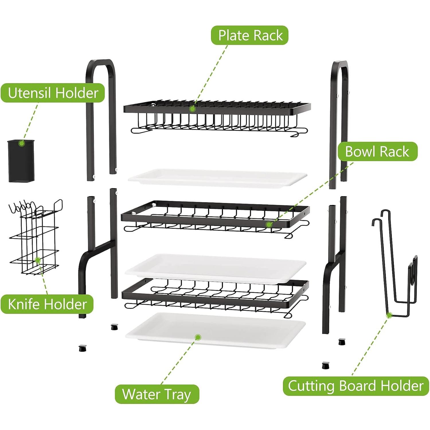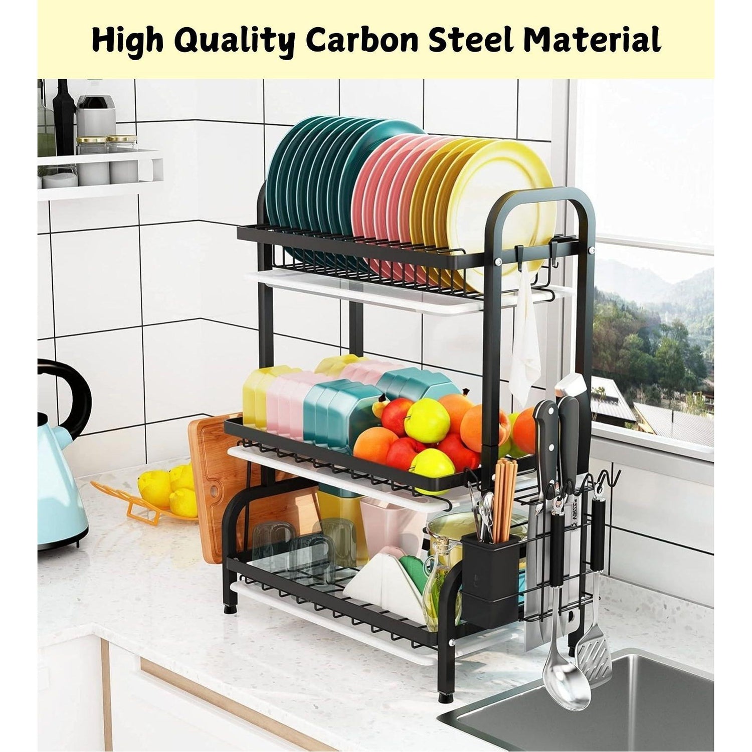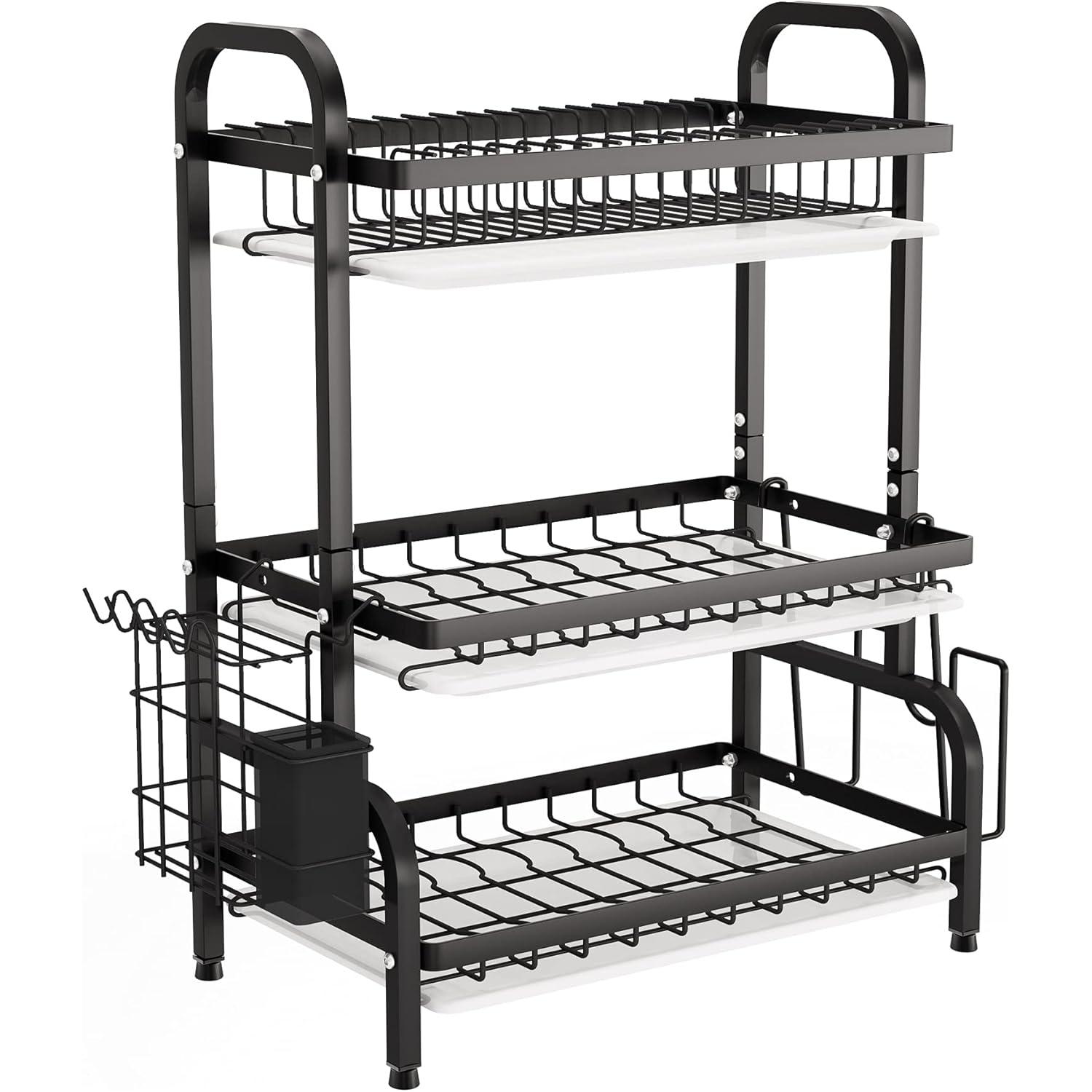 Dish Drying Rack 3 Tier Large Capacity Kitchen Storage with Utensil and Cutting Board Holder