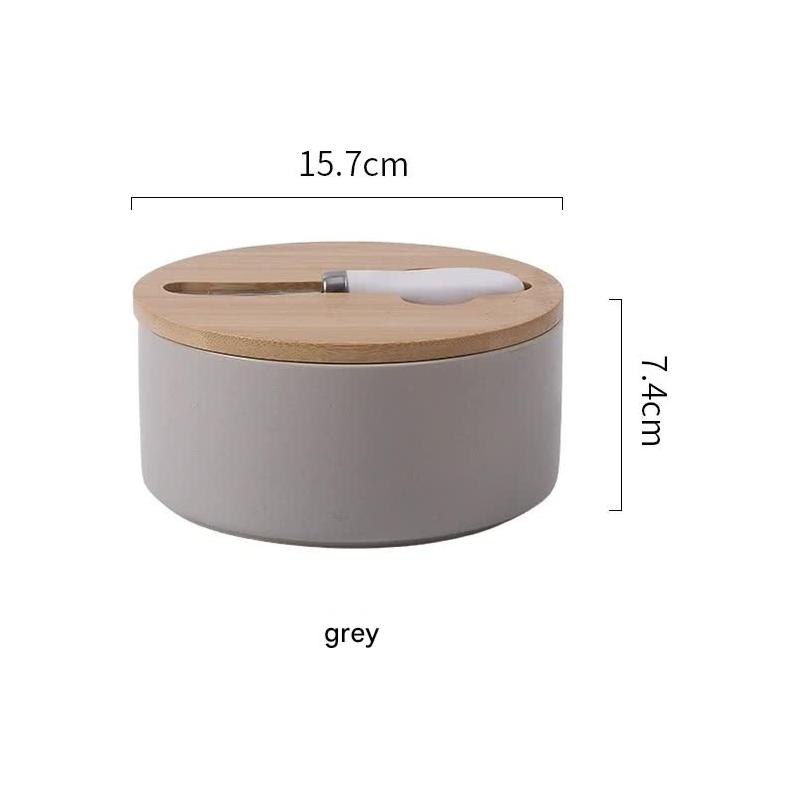 Elevate your kitchen storage with this Nordic Ceramic Butter Dish, designed to keep your butter or cheese fresh and easily accessible. Made from high-quality ceramic, this dish features a sleek,complementing any kitchen decor. The bamboo lid provides an airtight seal to maintain freshness, while a built-in slot securely holds the included butter knife, ensuring convenience during use. With a capacity suitable for standard butter blocks, this dish is perfect for daily use or entertaining guests.