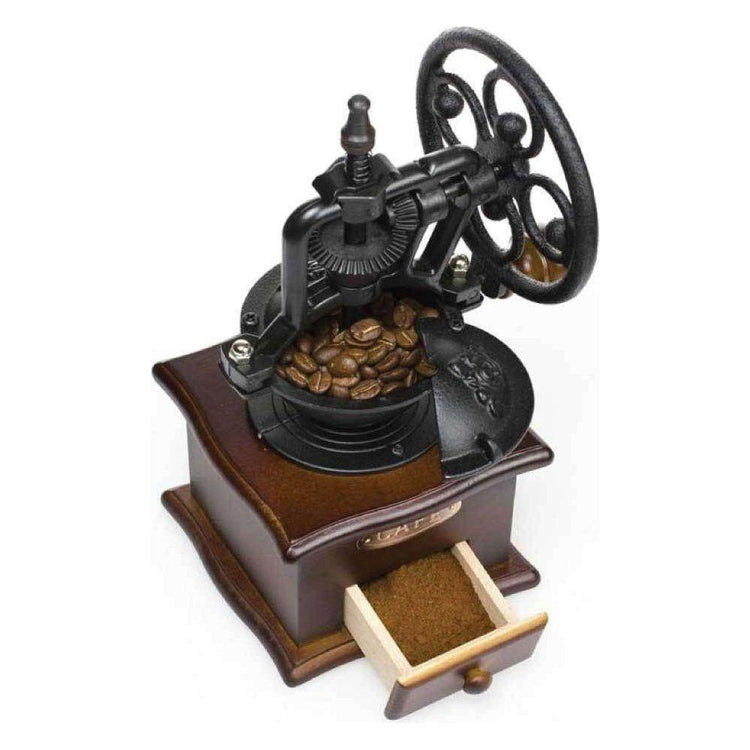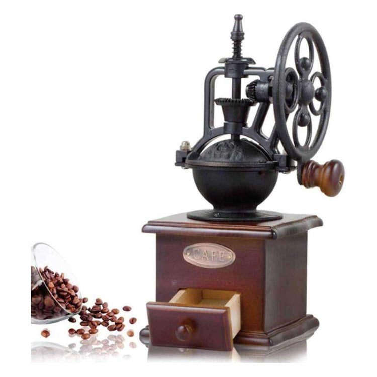 The Vintage Manual Coffee Bean Grinder is unique and classic in design and will make the perfect addition to any kitchen. The warmth of the wood and cast iron will entice you to easily grind your own beans for the perfect morning or afternoon coffee.