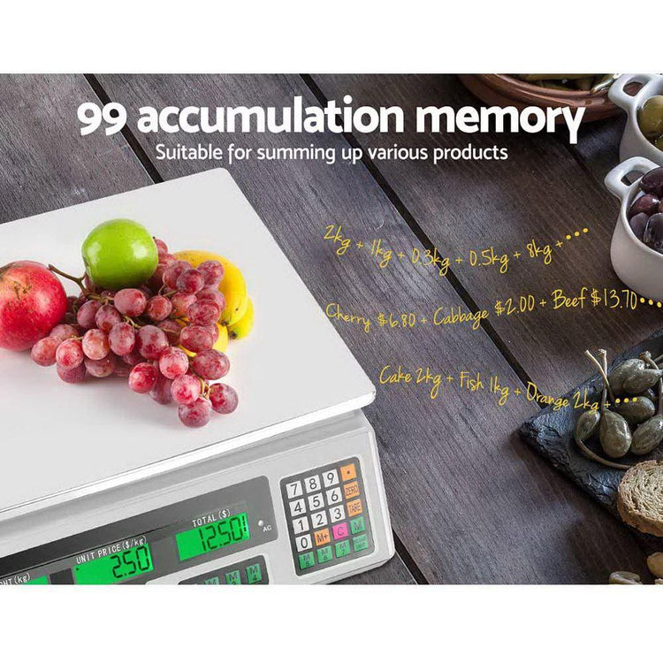 Comprising highly accurate sensors, our Emajin Digital Scale can store up to eight unit prices and features a 99 accumulation memory. Simply put, after weighing your 98th item, the Scale will automatically sum up the grand total for you. The readings are clearly indicated on large LCD displays on both sides of the Digital Scale for total convenience in a busy retail environment. And with a total weight capacity of 40kg, weighing on the Digital Scale can be done with one gram increment for greater accuracy and precision.