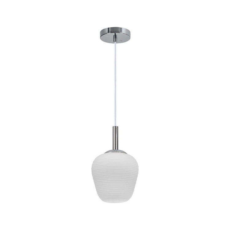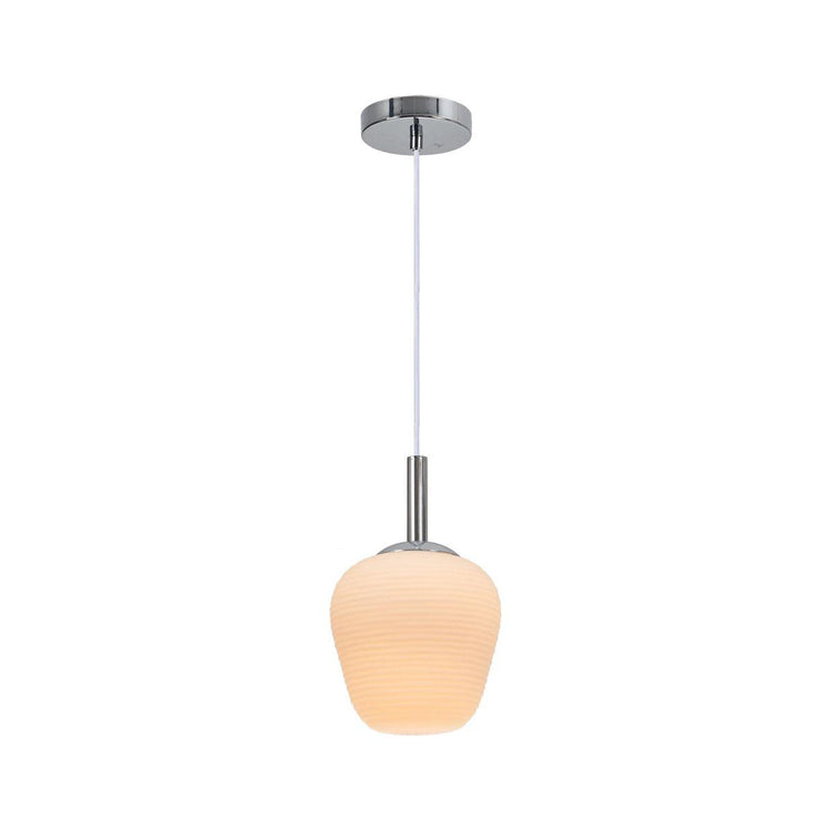 When illuminated, the frosted glass shade of the Annika Glass Pendant Light glows beautifully and produces a soothing mood in the space it is installed. The shade also has an attractive ribbed design to add some texture, style and personality to the Annika Glass Pendant Light.