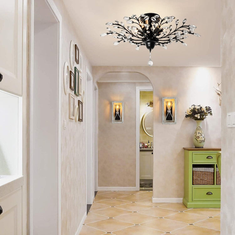 - VERSATILE STYLE: Instantly upgrade any space with this stylish crystal ceiling light. Its elegant gold or black finish adds a touch of retro charm, perfect for creating a warm and inviting atmosphere in any hallway, bedroom, living room, dining room, kitchen, bar, hotel, balcony, stairwell, children's room, or small space.