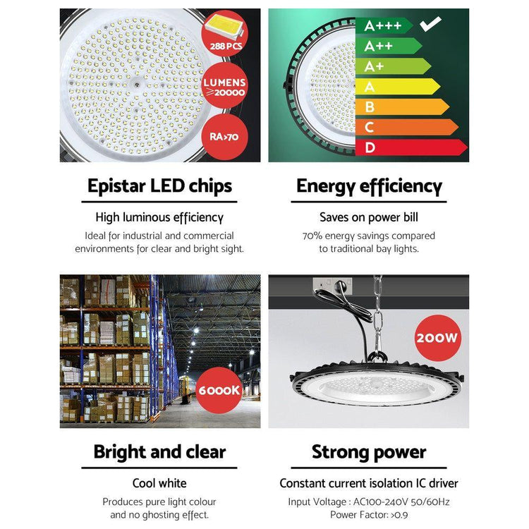 Our Leier LED High Bay Lights are perfectly suited for warehouses, showrooms, supermarkets or any commercial building with high ceilings. The 3030 LED light chips are provided by Epistar and the built-in constant current IC driver is packed with performance optimisation technology such as monitored temperature, voltage, current and circuit stability. The lights also feature a honeycomb die-cast aluminium heat sink design for excellent cooling and heat dissipation for better efficiency. Not least, the high bay lights are SAA approved and certified to Australian standards.