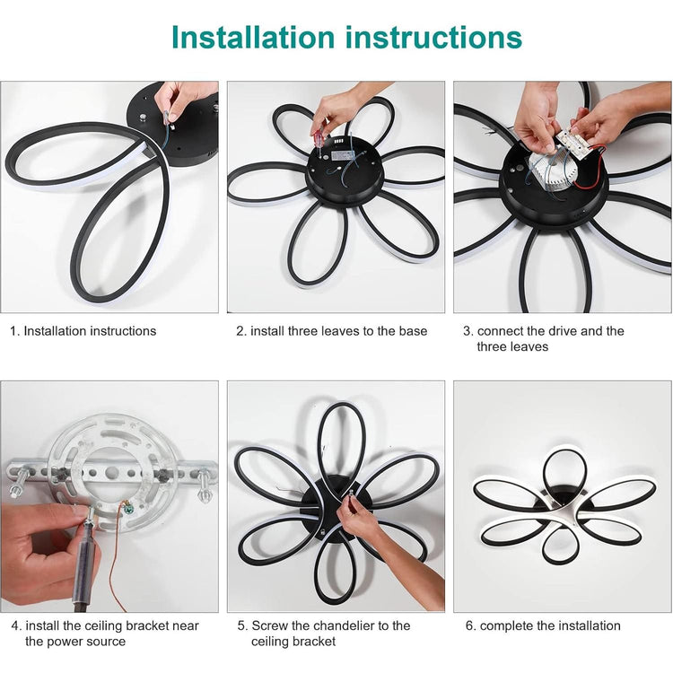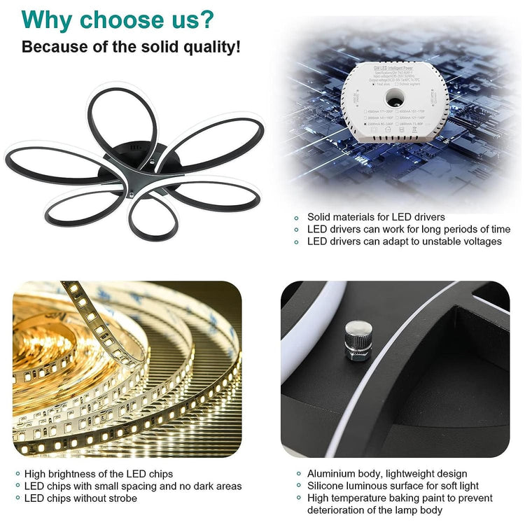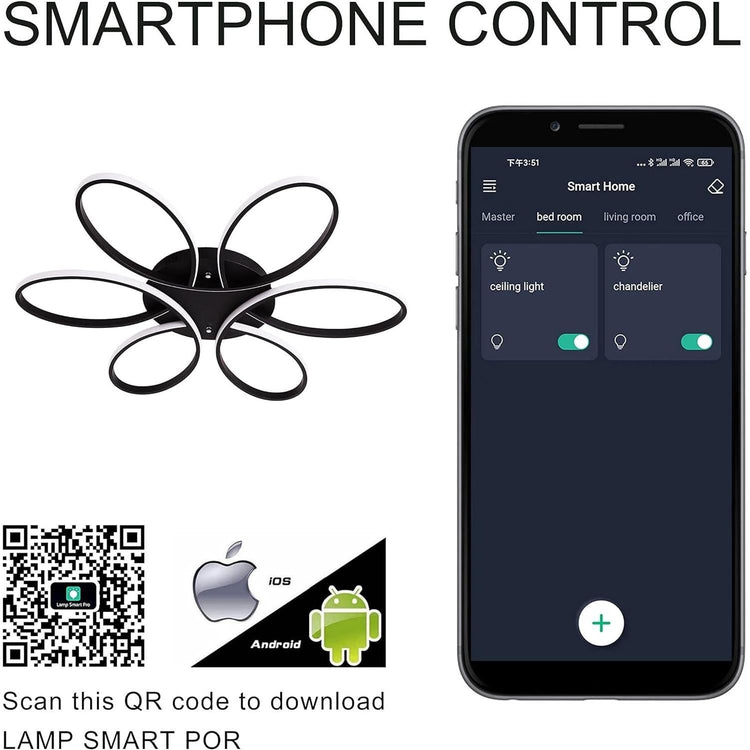 • Illuminate your home with this modern LED chandelier lighting fixture. Features a flush mount design and dimmable remote control for easy adjustment of brightness in any room of your home. Perfect for living rooms, bedrooms, dining rooms, studies, and kids rooms.