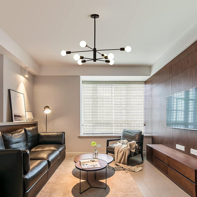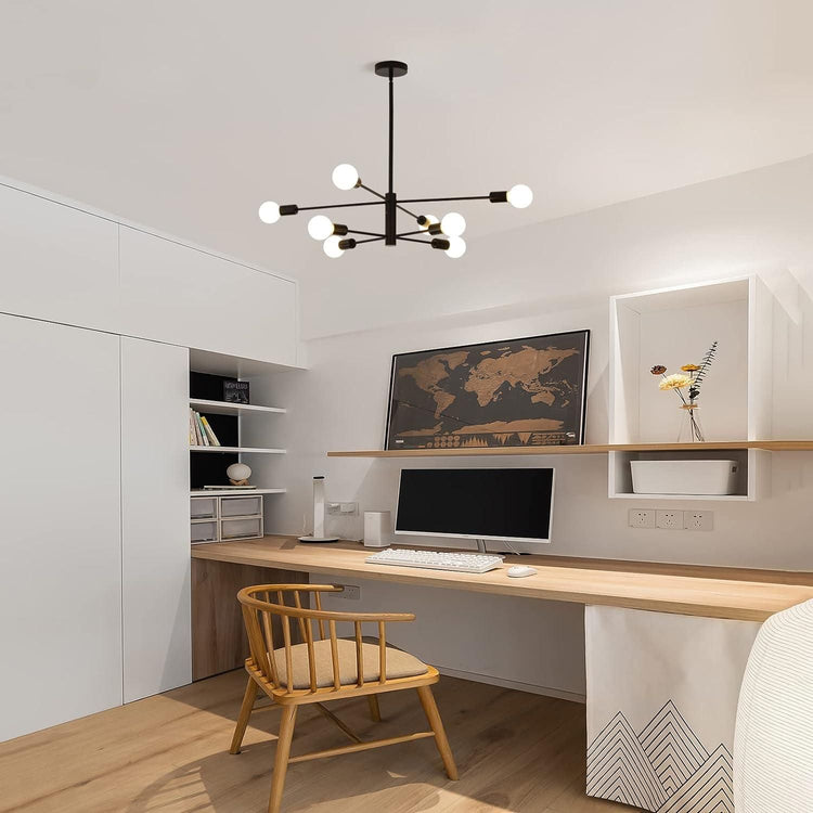 • This sputnik-style chandelier is the perfect light for any home. Its modern and luxurious design, with golden copper and black painted metal details, adds a hint of fashion to any space. Enjoy the combination of modern minimalism and luxury style with this beautiful pendant lighting.
