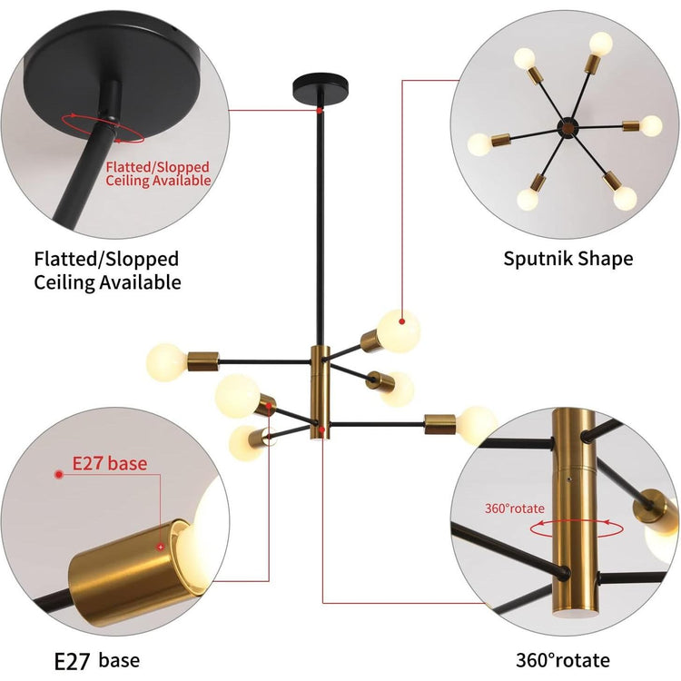 - Light Luxury Style: Make a statement in your home with this sputnik pendant lighting. Its modern and light luxury style design with golden copper and black paint will add a touch of elegance to any room, from the dining room to the bedroom, kitchen, bar, office, balcony, foyer, cafe shop, and farmhouse.