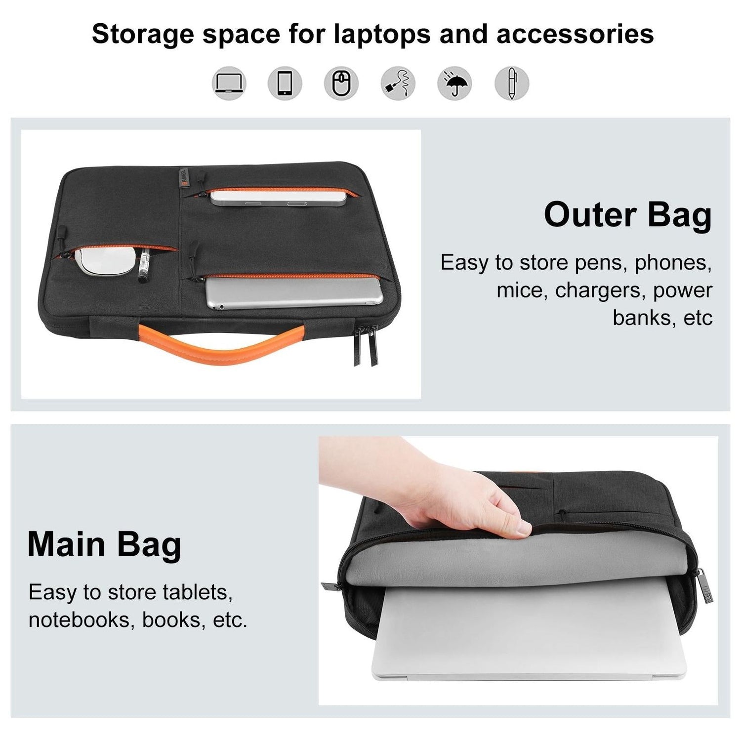 • 1 x 14.0 Inch-15.0 Inch Laptop Sleeve Case Zipper Briefcase Handbag For Macbook Samsung Thinkpad Sony Dell Alienware Chuwi Asus Hp Laptops