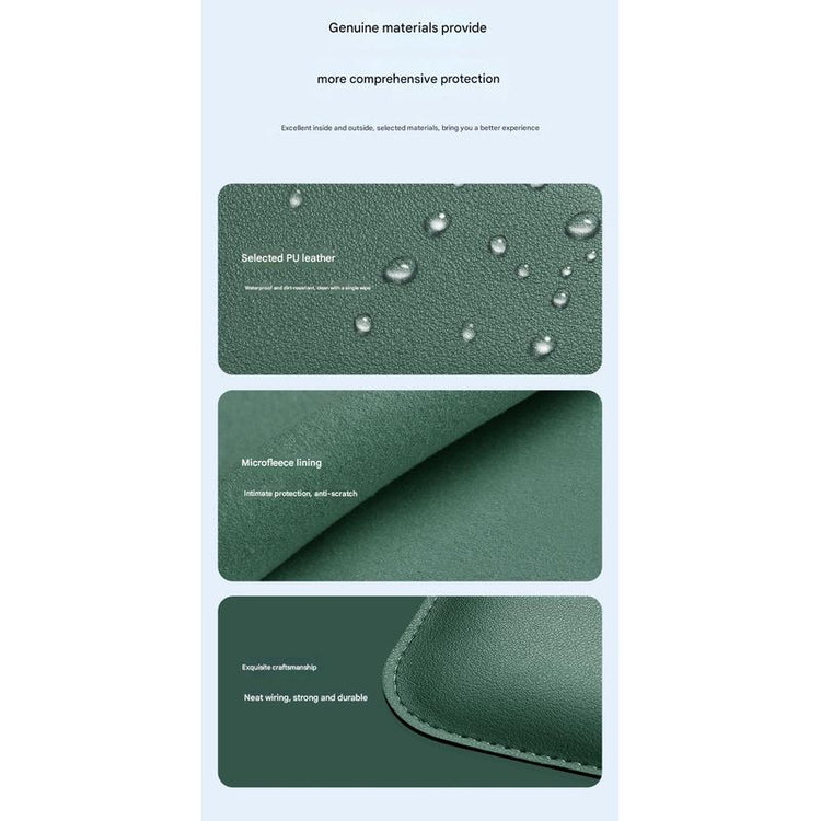 Protect and enhance your laptop experience with our versatile 3-in-1 PU Leather Laptop Sleeve. This multifunctional accessory is not just a protective case; it also cleverly transforms into an ergonomic laptop stand and a smooth mouse pad. The built-in bracket creates a stable triangular structure, providing a comfortable typing angle and promoting better heat dissipation. Crafted from high-quality, waterproof, anti-scratch, and splash-proof PU leather with a soft microfiber lining, it offers full protection for your device. The magnetic-free design with a secure hook-and-loop closure ensures your laptop is safe from potential magnetic damage. This light, portable, and stylish sleeve is the perfect all-in-one solution for work, study, and travel. The set also includes a matching accessory pouch for your charger, mouse, and cables.