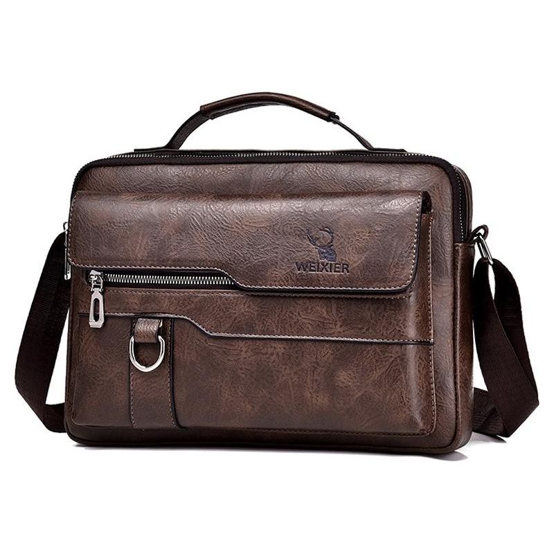 Leather Men Shoulder Bag Business Laptop Case Retro Design - Dark Brown
