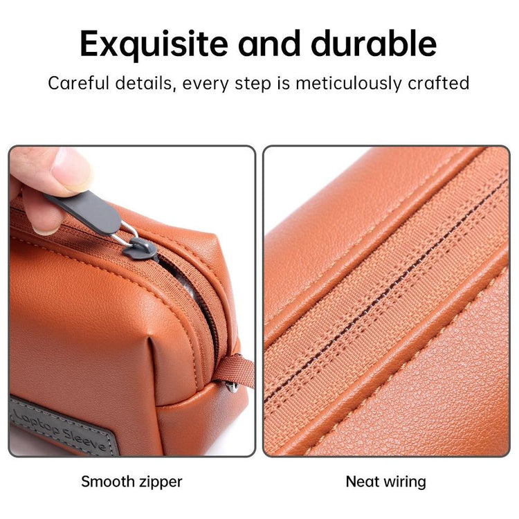 Waterproof Laptop Accessory Bag - Pu Leather - Brown