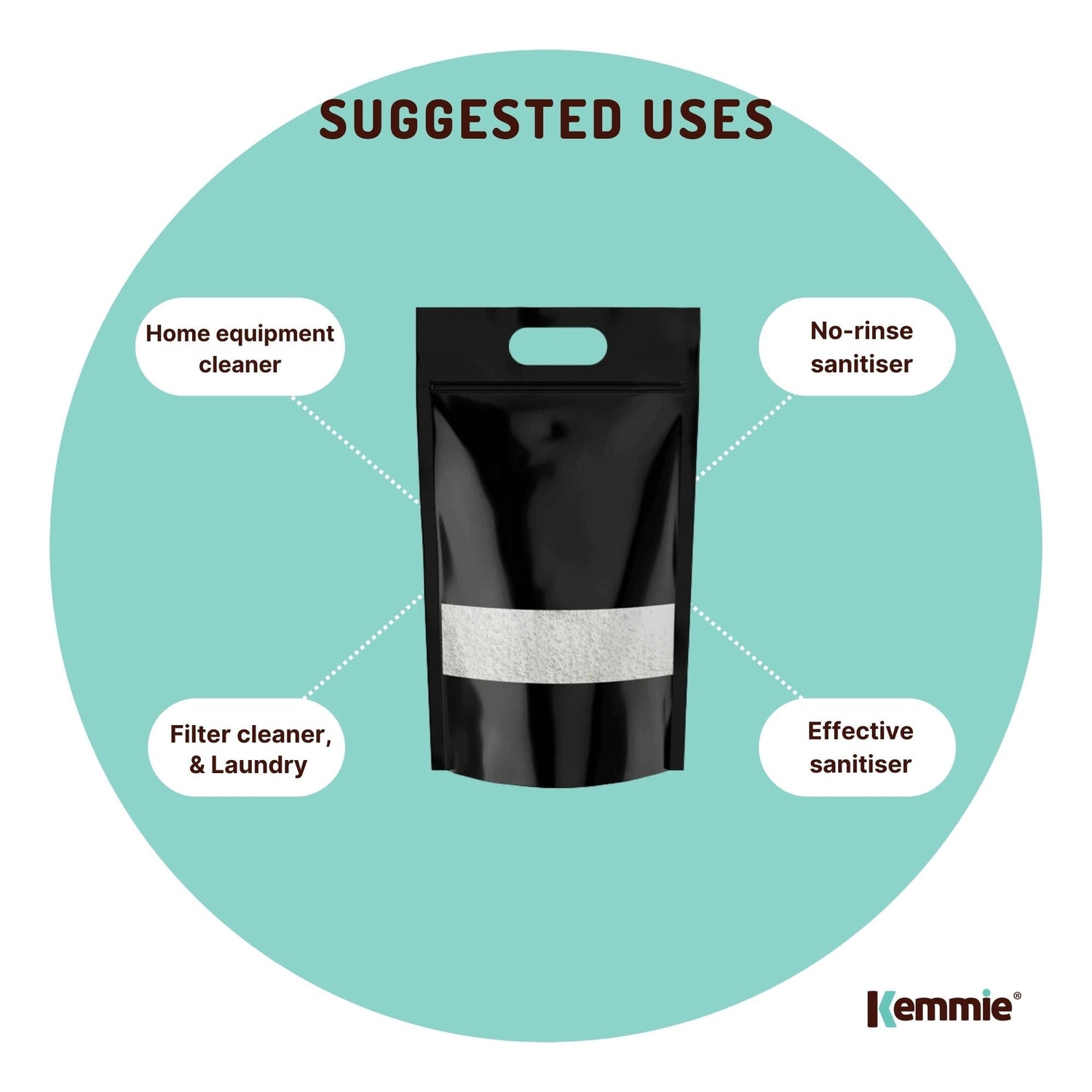 Sodium Percarbonate is a multi-purpose powder used in deck, carpet, household and laundry cleaning products. Also, used as a home brewing equipment cleaner and a mild no-rinse sanitiser.