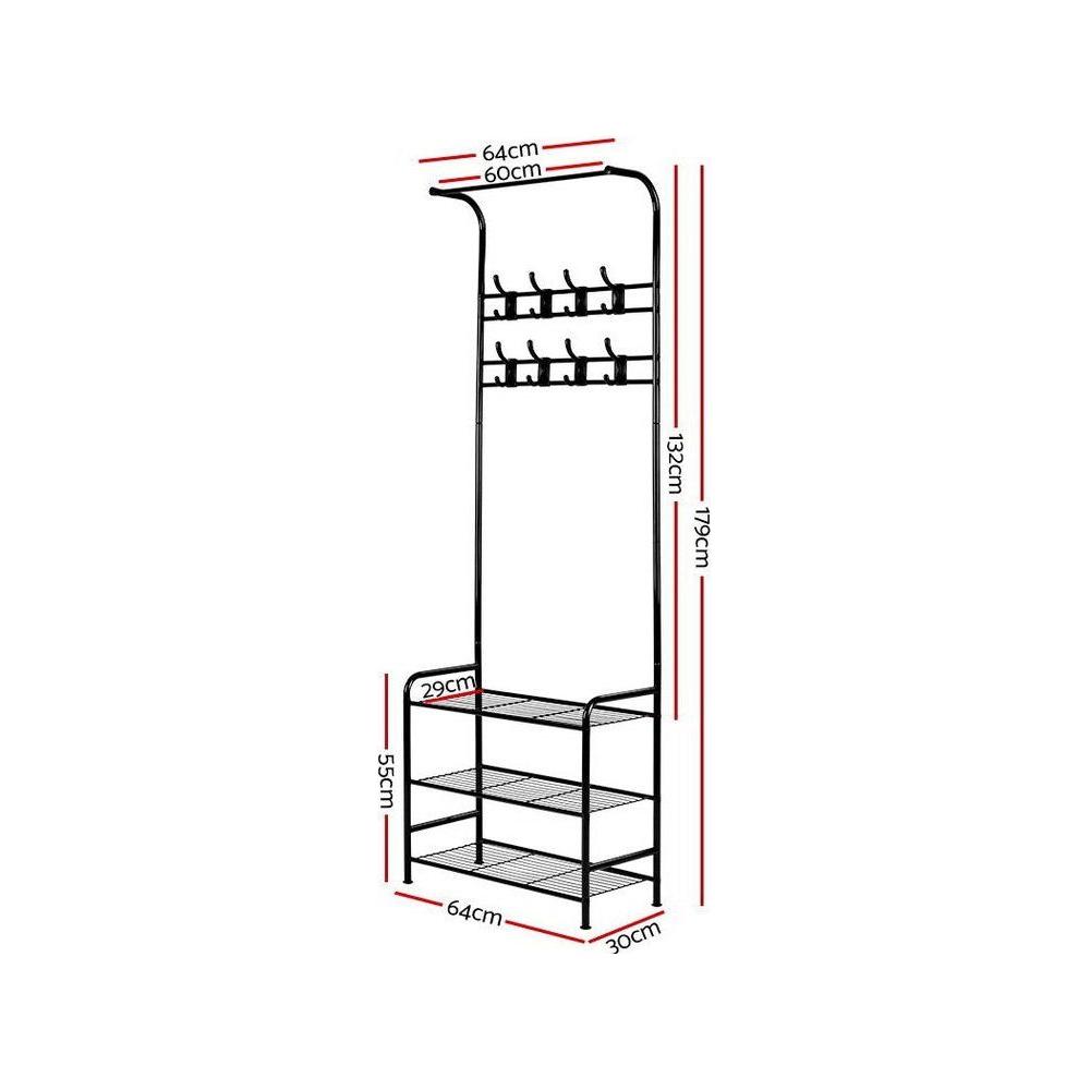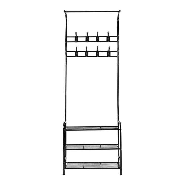With its stylish black looks, our Artiss Metal Clothes Rack is beyond just a sleek clothes rack. It also doubles as a storage shelving with three tiers of shelves to store a multitude of items, from handbags, accessories to other personal artifacts. Exuding lots of natural class and style, the coated metal frame is simply meticulous in finish and makes for a great furniture piece for any part of your home. Use it as a hallway hanger and the clothes rack is equally at home. And as a shop display, it makes for a stylish visual merchandising piece too. Better still, the rack can handle up to 5kg in weight with each tier capable of holding 10kg and each hook 2.5kg. In other words, the metal clothes rack is as strong and durable as it stands. The clothes rack also comes with eight hanging hooks for more handy use and anti-slip floor protectors to keep your floors pristine and scratch-free.