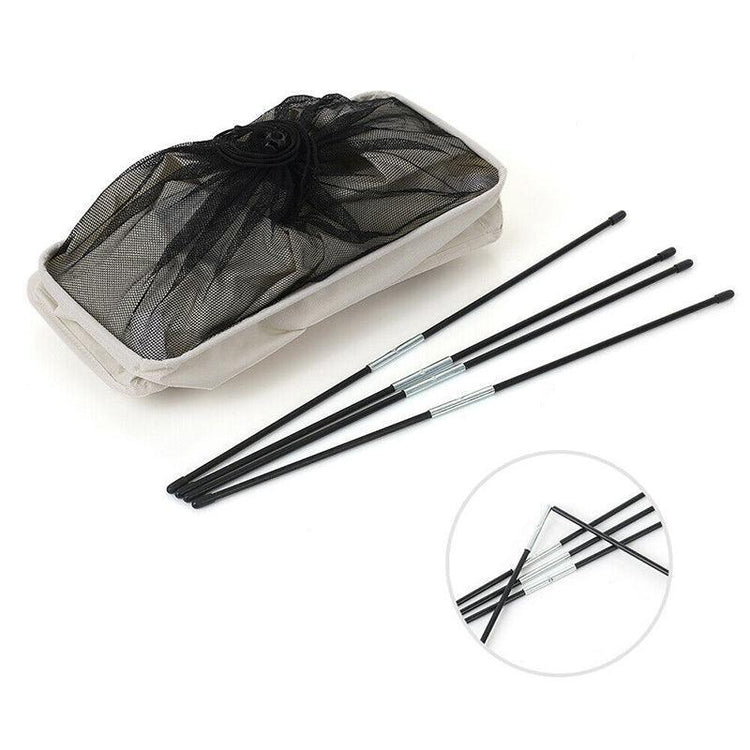 Insert rods into slots in corners and secure with Velcro fasteners.Material: 600D Oxford Cloth + PE Board + Mesh + Metal