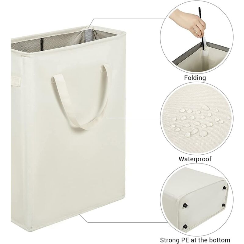 Long Foldable Laundry Basket With Handles 45L Beige