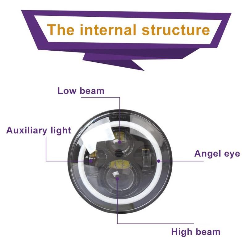 • 1 x 2 Pcs 7 Inch Ip68 Waterproof 6500K 75W Cree Led Headlight Hi / Lo Beam Driving Lamp For Jeep Wrangler Jk Tj Lj