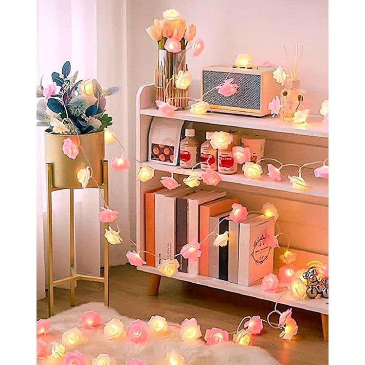 20 Pink n White Rose 3D Fairy Lights 3M String, Battery (AA) Indoor & Outdoor Decorations Wedding Valentines Romantic Room Table Lighting