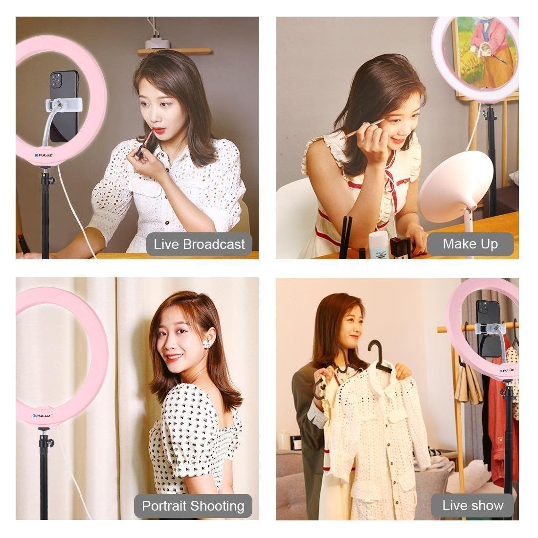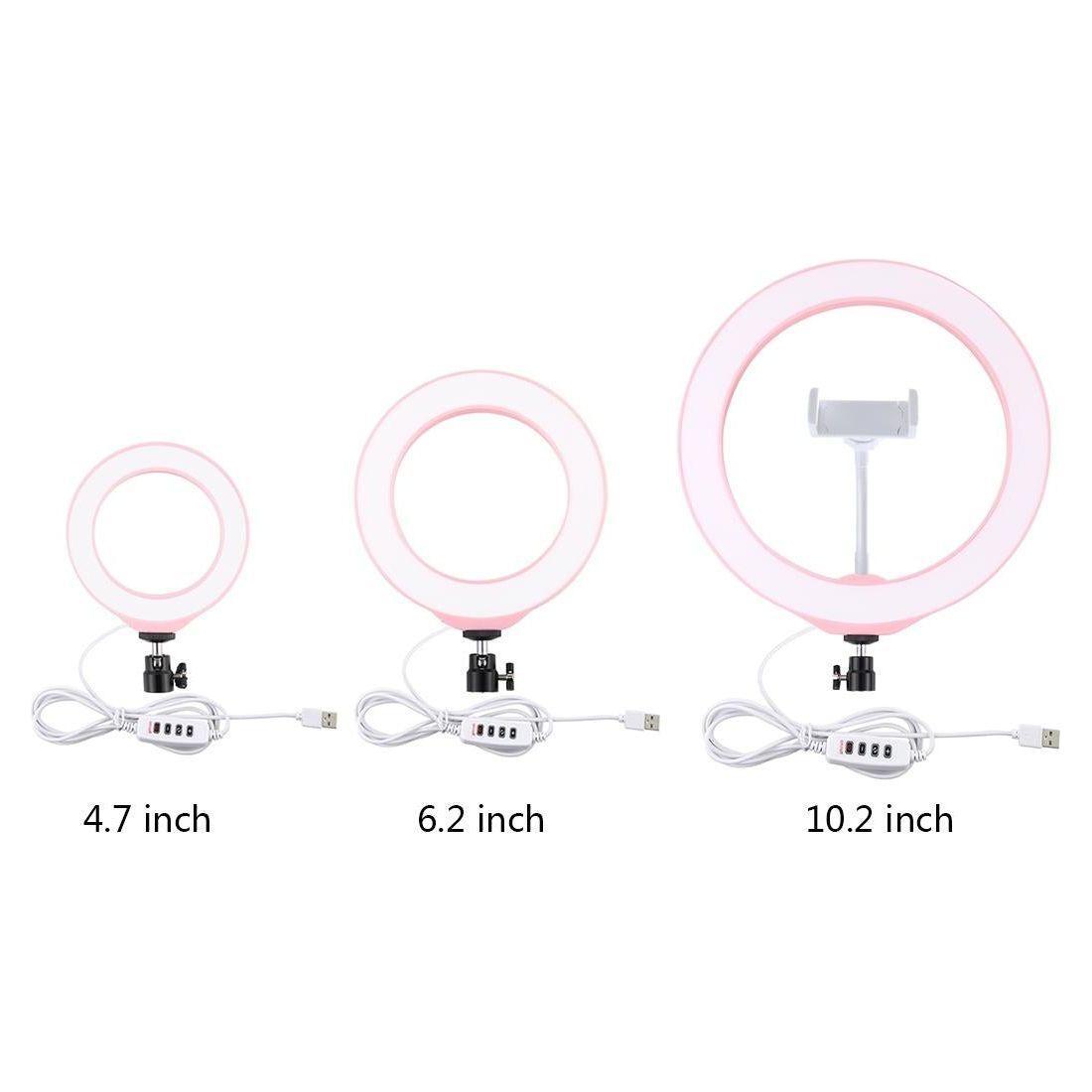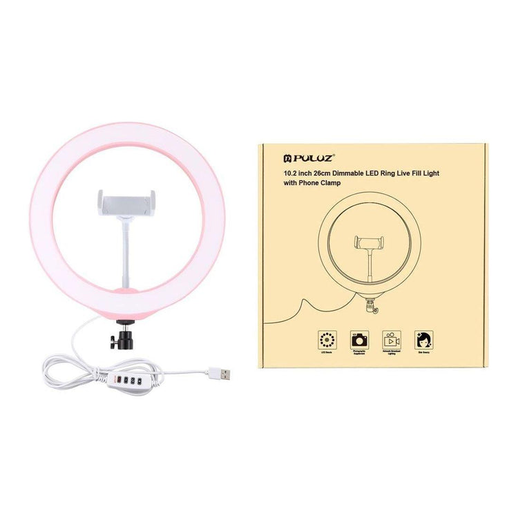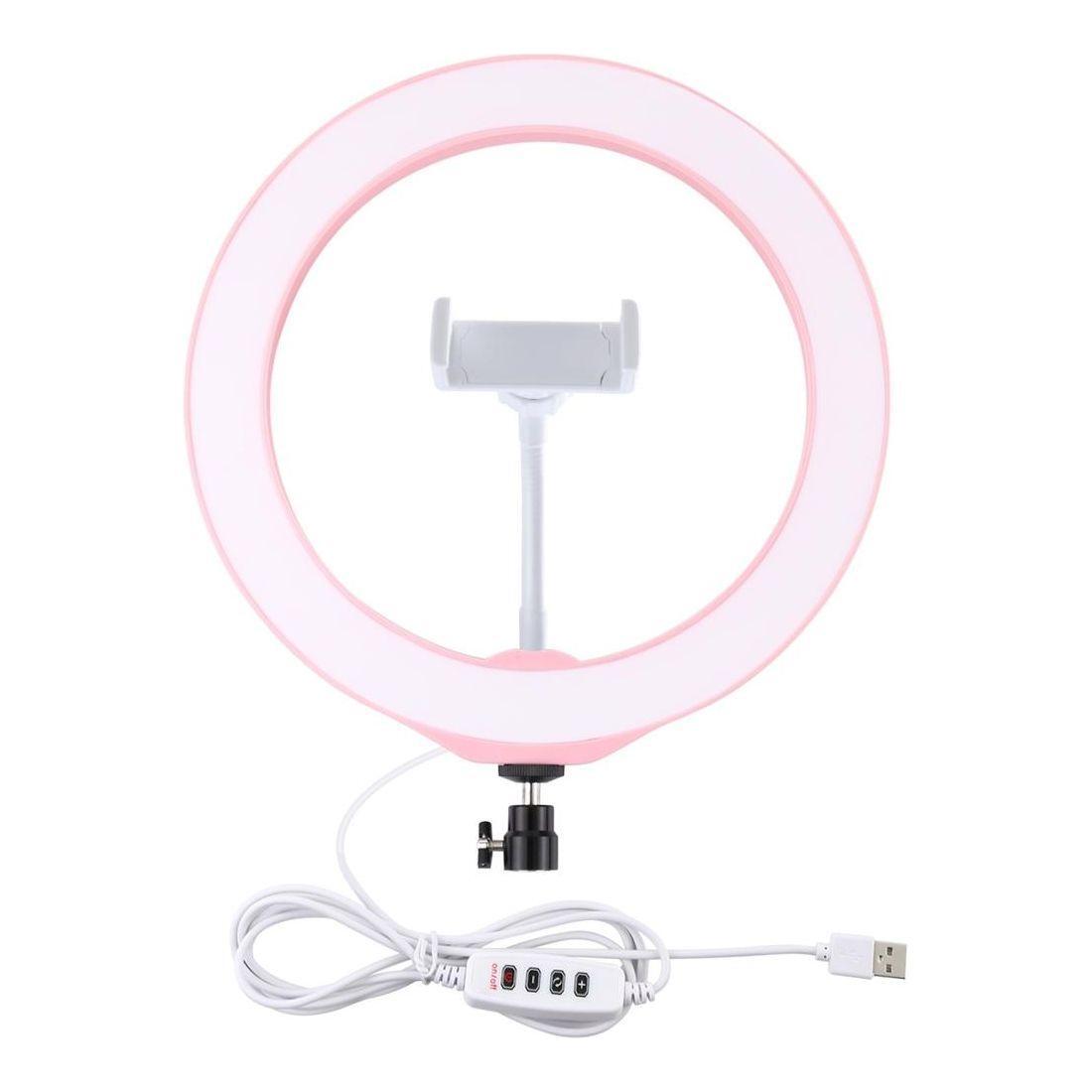 26Cm Dimmable Led Ring Light With Tripod And Phone Clamp - Pink