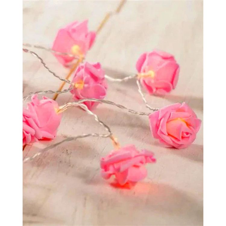 50 Roses/LED Bulbs (warm white) to a 5 metre length wire with a 3 x AA battery Pack