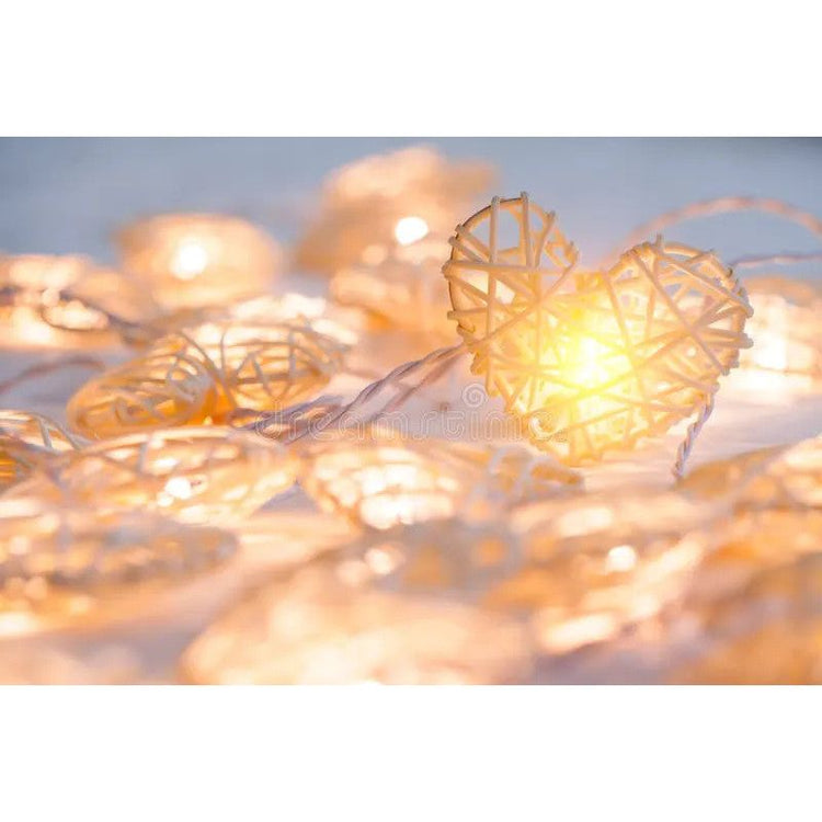 White Rattan Heart String Fairy Lights
