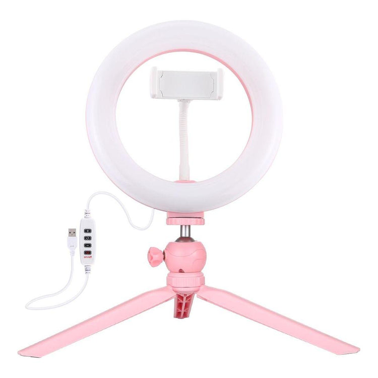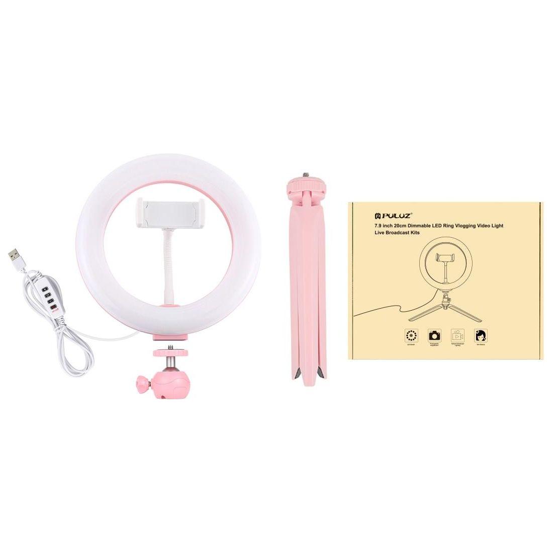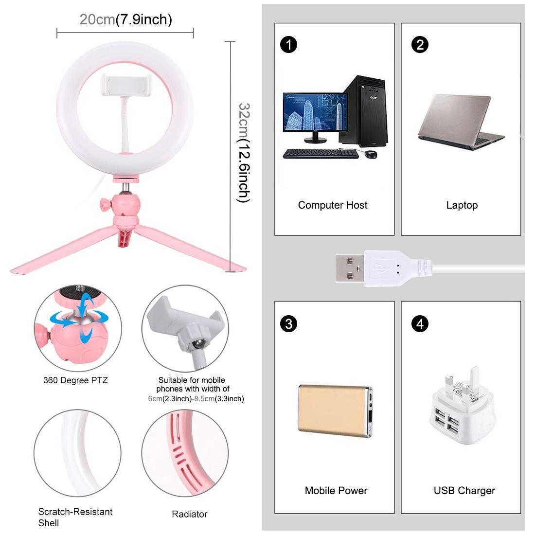 • 1 x 7.9 Inch 20Cm Light Desktop Tripod Mount Usb 3 Modes Dimmable Dual Colour Temperature Led Curved Light Ring Vlogging Selfie Beauty Photography Video Lights With Phone Clamp
