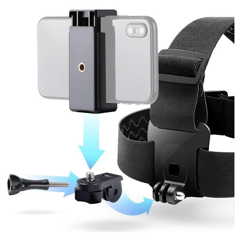 • 1 x Elastic Mount Belt Adjustable Head Strap with Phone Clamp Screw and S Type Adapter for Gopro Hero10 Hero9 8 7 6 5 Xiaoyi and Other Action Cameras and Smartphones
