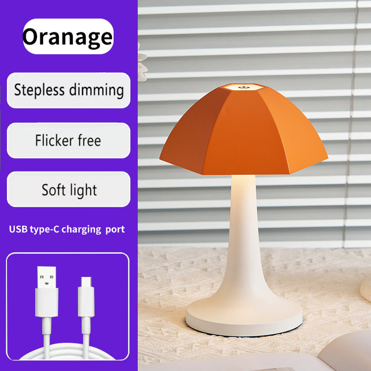 Orange And White Nordic Umbrella Mushroom Table Lamp - Dimmable Ambient Light