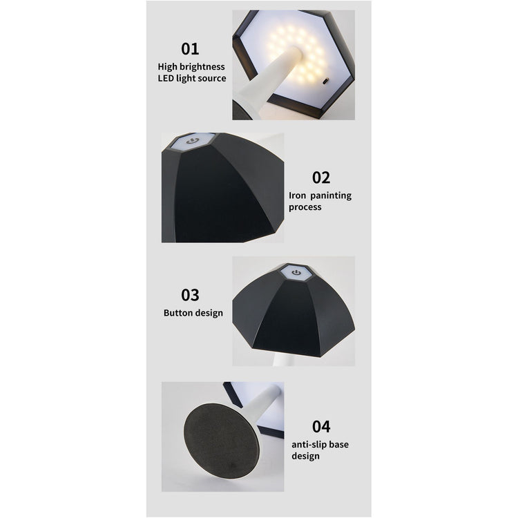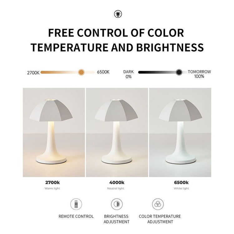 Elevate your space with this Nordic Umbrella Mushroom Table Lamp. Inspired by Danish design, this elegant ambient light features a unique umbrella-shaped shade, perfect for bars, living rooms, or as a sophisticated bedside night light. Crafted from iron and acrylic, it offers stepless dimming and adjustable color temperatures for a customized lighting experience.