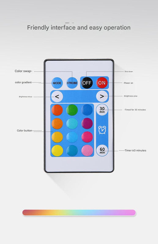 • Adjustable Brightness: Easily increase or decrease the light's intensity with the remote control.