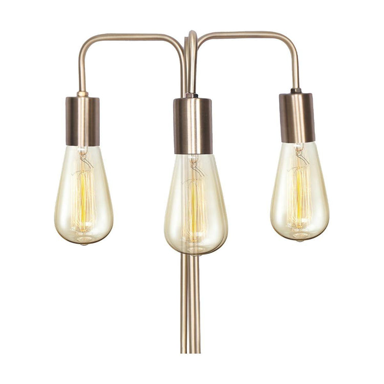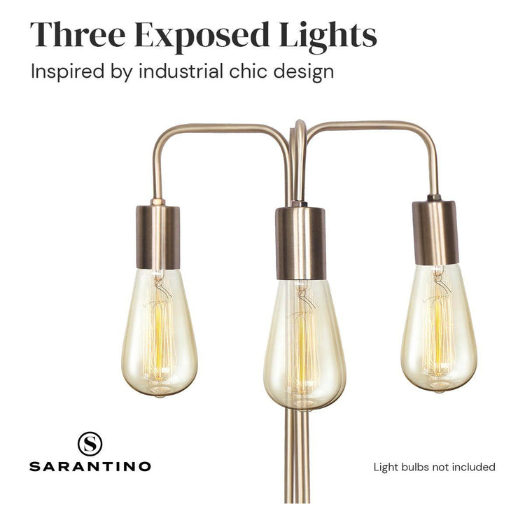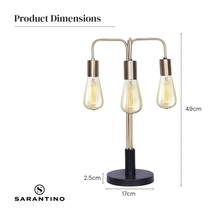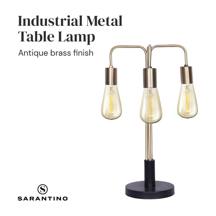 The Sarantino Industrial table lamp is designed for a modern and elegant look. It features a metal lamp base with exposed bulbs for an added industrialized touch. A rotary switch on the metal post makes it easy to switch on and off.