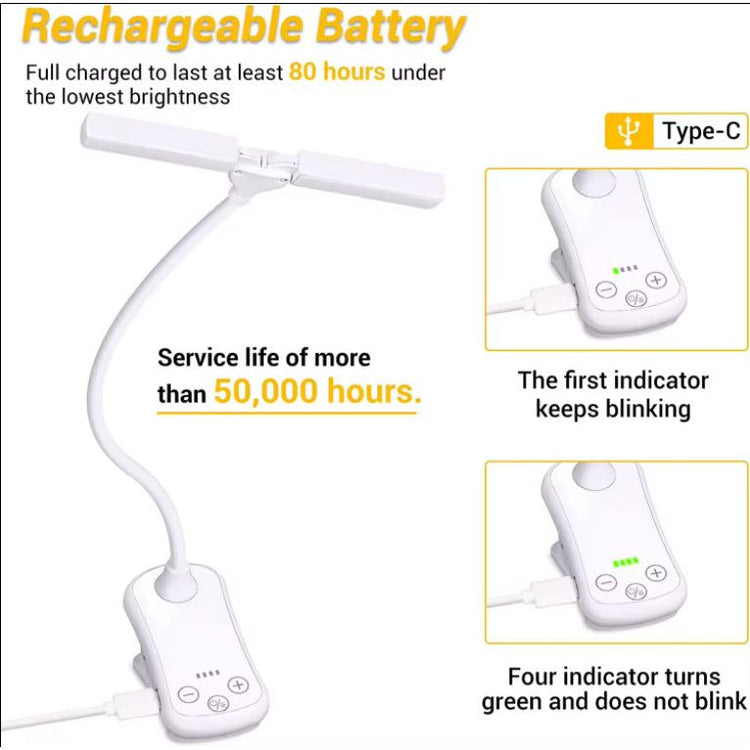 Rechargeable Dual-Head Clip-On Book Light - Read Comfortably Anywhere