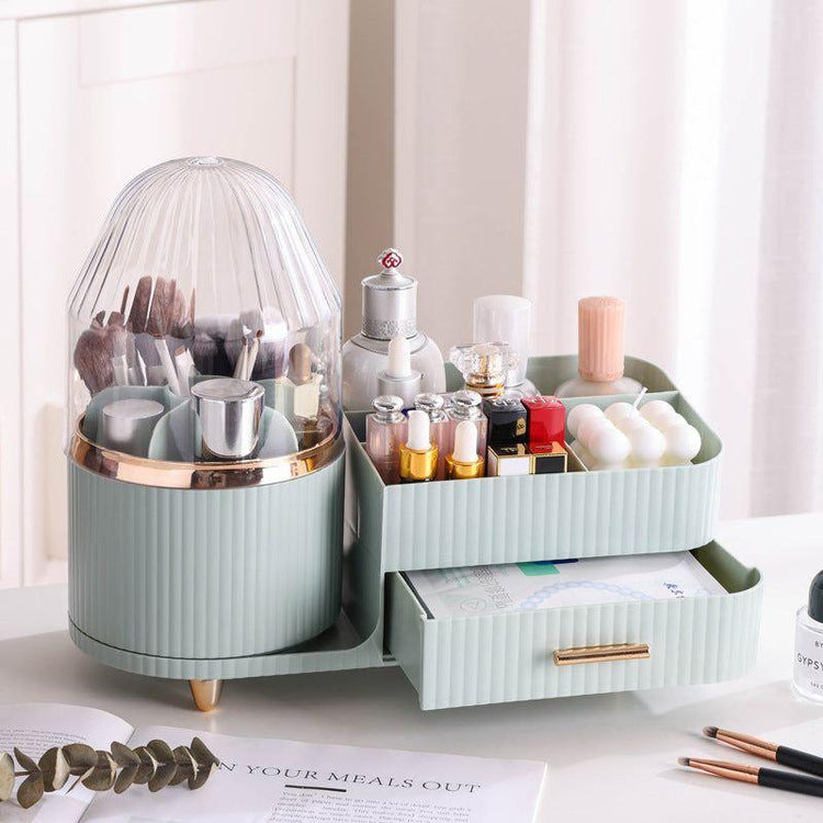 Rotating Makeup Organizer Box - Multi-Compartment Cosmetic Storage with Dustproof Cover