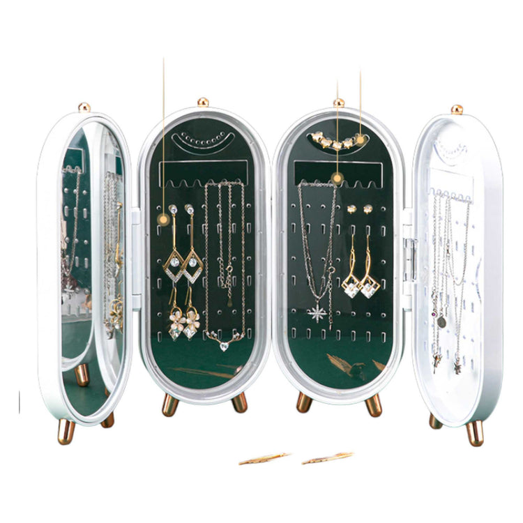 Say goodbye to clutter with this beautiful 4 panel jewellery case. Including 3 segments to store all of your favourite jewellery pieces, earrings and necklaces alike. a 4th mirrored segment means that you can take this on the go or put it atop a chest of drawers, vanity or in the robe for easy access and use.