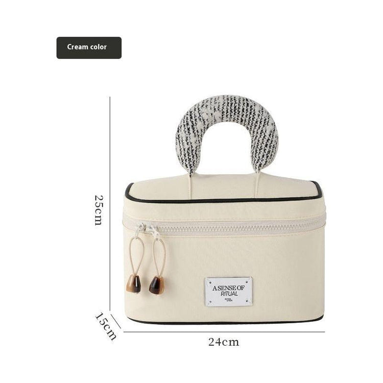 Portable Waterproof Cosmetic Bag with Handle -Cream White