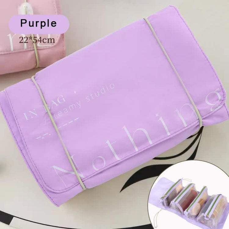 Purple Portable 4-in-1 Cosmetic Storage Bag, Removable Travel Organizer for Makeup, Toiletries, and Small Accessories
