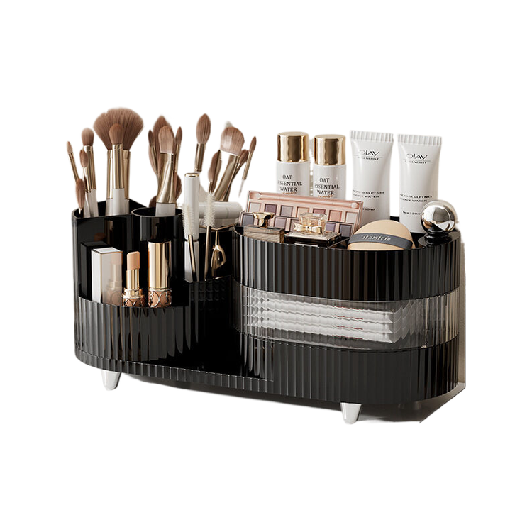 Rotating cosmetics storage box with three layers of milk black color