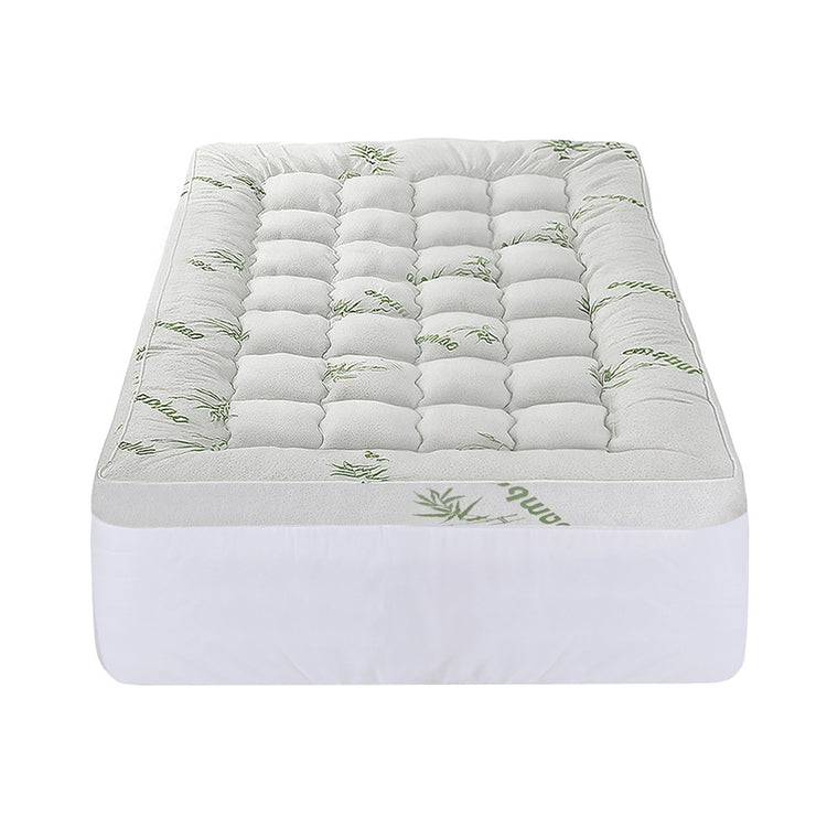 Elevate your sleep with the Giselle Bedding Pillowtop Topper, featuring an 11cm plush profile of 1500GSM hollow fiber beneath premium bamboo fabric. The 3D wave-check quilting enhances airflow while distributing weight evenly across your mattress. Designed for deep mattresses up to 45cm, this highly breathable topper arrives vacuum-packed for hygiene and is machine-washable for effortless maintenance.
