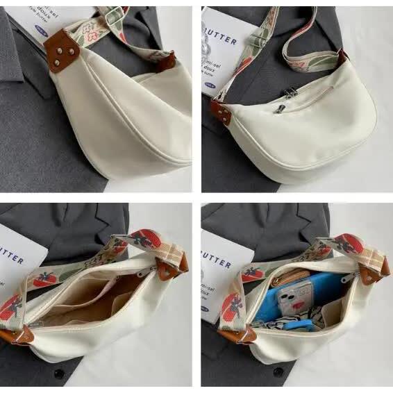 This casual crossbody dumpling bag is the perfect blend of style and practicality. Designed with a spacious interior and durable canvas material, it's ideal for daily use, shopping, or outings. The floral-embroidered strap adds a unique touch, making it a standout accessory for any outfit.