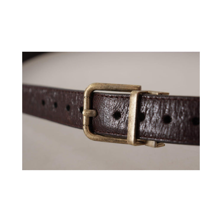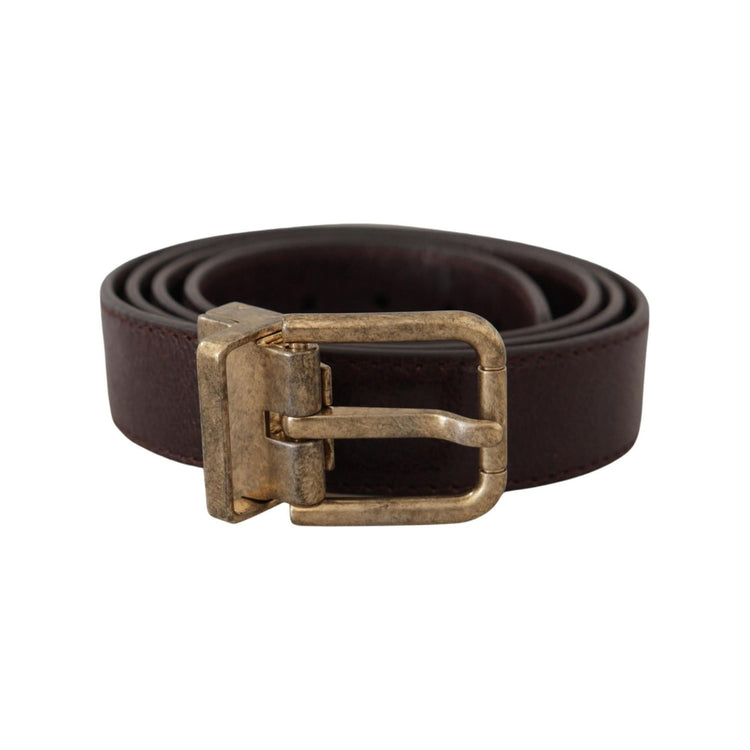 Dolce & Gabbana Men's Brown Calf Leather Vintage Logo Metal Buckle Belt - 95 cm