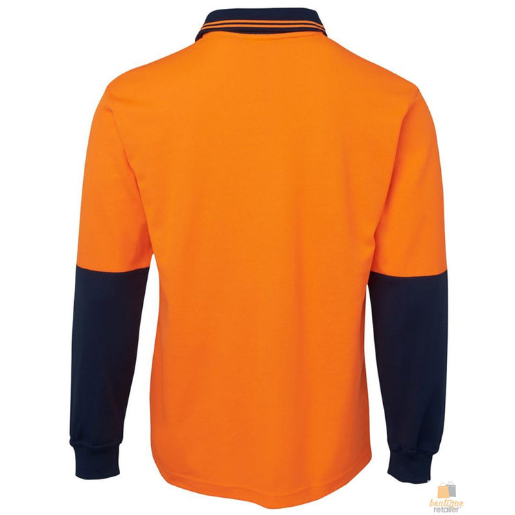 HI VIS LONG SLEEVE POLO SHIRT Top Safety Workwear Fluro Breathable Dry WB - Orange - L
