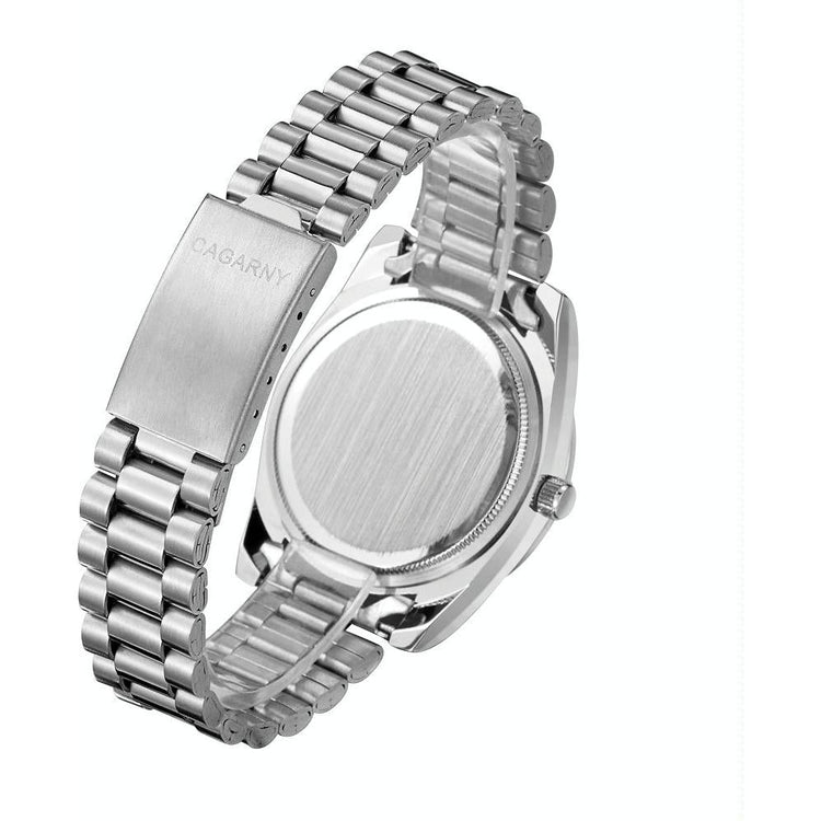 Men Quartz Watch With Diamond-Encrusted Roman Numeral Dial