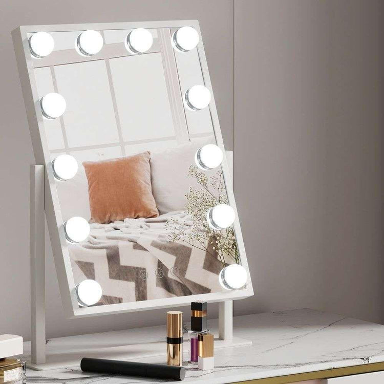 Get the star treatment with our gorgeous Embellir Make-up Mirror. With easy touch controls for adjustable brightness and colour, you can account for every kind of lighting condition to always look your best. The solid metal frame is sturdy, lightweight, and ensures long-lasting use. The frame sits on a stable enlarged base that not only prevents tipping but allows for 360° rotation for the perfect angle every time. Its compact design means you can complete your beauty routine without taking up much-needed space. Turn your bedroom or bathroom into a celebrity set overnight with our Embiller Make-up Mirror, and enjoy beauty in all its illuminated brilliance.