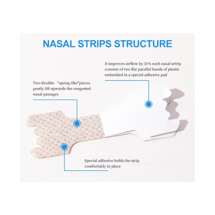 Nasal strips are made of flexible, spring-like bands that fit right above the flare of the nostrils. The underside is adhesive so that once positioned on the nose, they stop and stay there. As the bands attempt to straighten back to their original shape, they lift the sides of the nose and open the nasal passages.