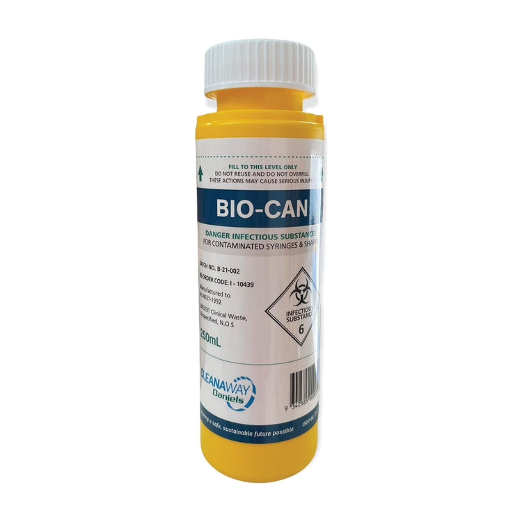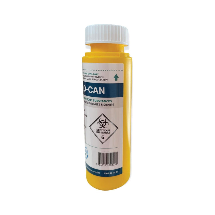 Sharps Container 250ml is a safe deposit for infectious needles and syringes. Stable containers designed to sit on a flat surface, handbags or car glove component. Tamper and child-proof lid.