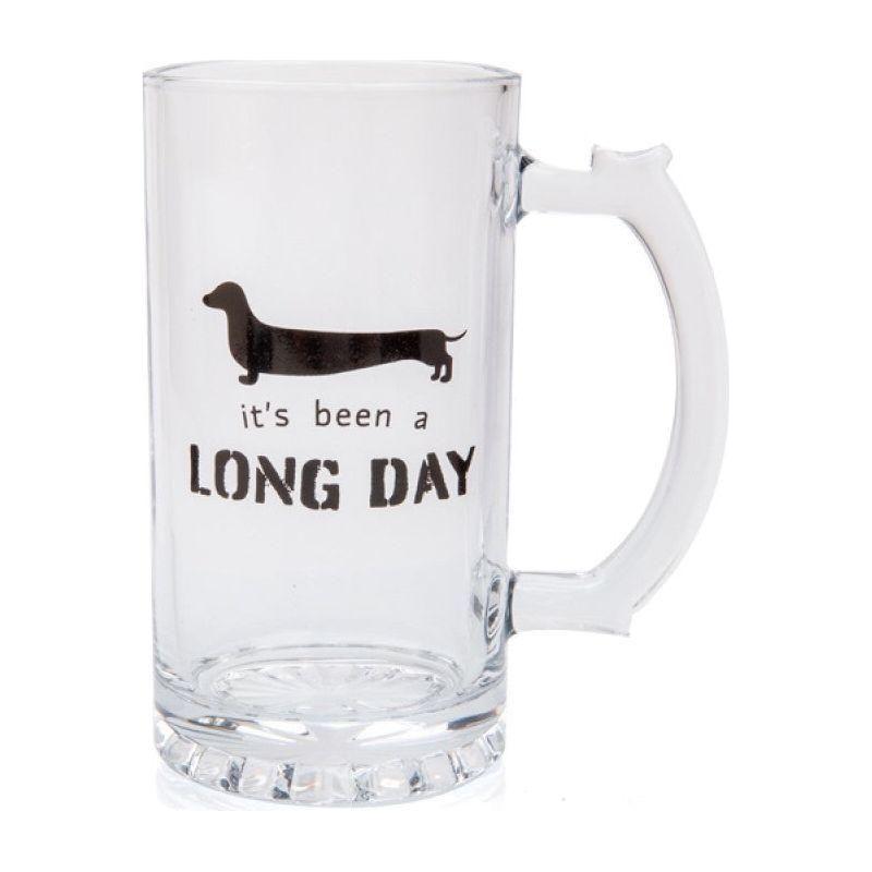 Sturdy glass beer stein featuring everyone's favourite sausage-shaped pup