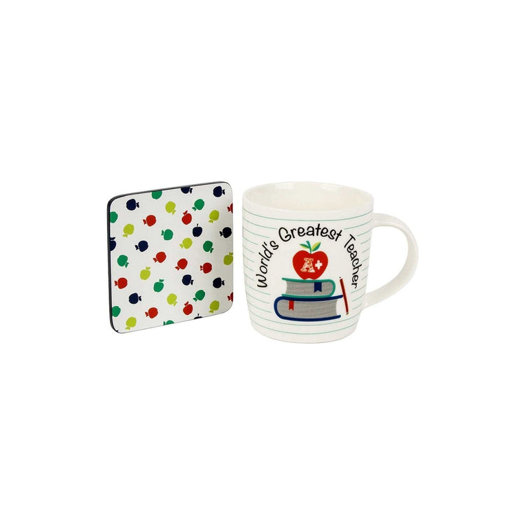 The World's Greatest Teacher Mug by Ladelle is a perfect gift for your teacher this Christmas as a token of appreciation for their great teaching. The design features a print stripes and apples, the mug has "World's Greatest Teacher" text, books, apple and a pencil. Printed in crisp colour hues of white, black, red, grey, green, blue, and teal that your teacher will surely love. The mug and coaster are made from Porcelain, MDF/ Cork.